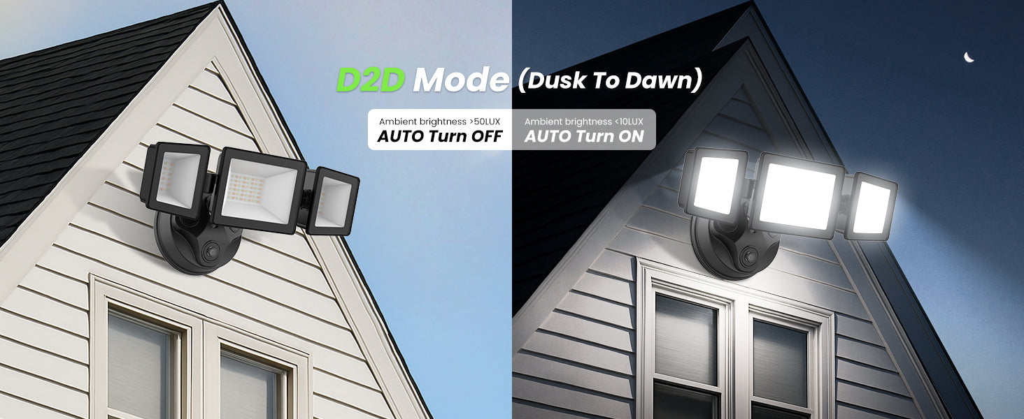 D2D mode only works in low-light conditions. The light turns on below about 5 lux at dusk and off above 10 lux at dawn. Values may vary with weather.