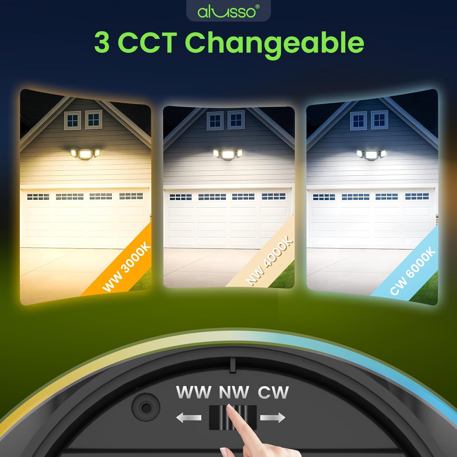 Cool white light (around 5000K) is commonly preferred for security lighting because it appears brighter and improves visibility. Adjustable 3CCT models from ALUSSO allow you to choose between warm, neutral, and cool white to suit different outdoor environments.