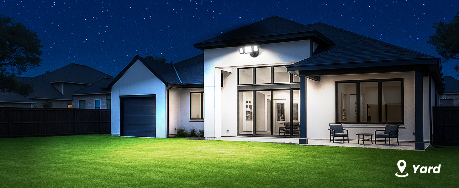 Most outdoor security lights start at around 1000 lumens. Larger areas such as driveways, yards, or building exteriors may require higher brightness for effective visibility. ALUSSO security lights are designed to deliver strong illumination suitable for common residential and commercial outdoor spaces.